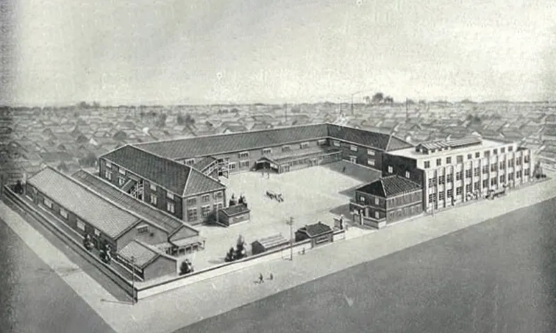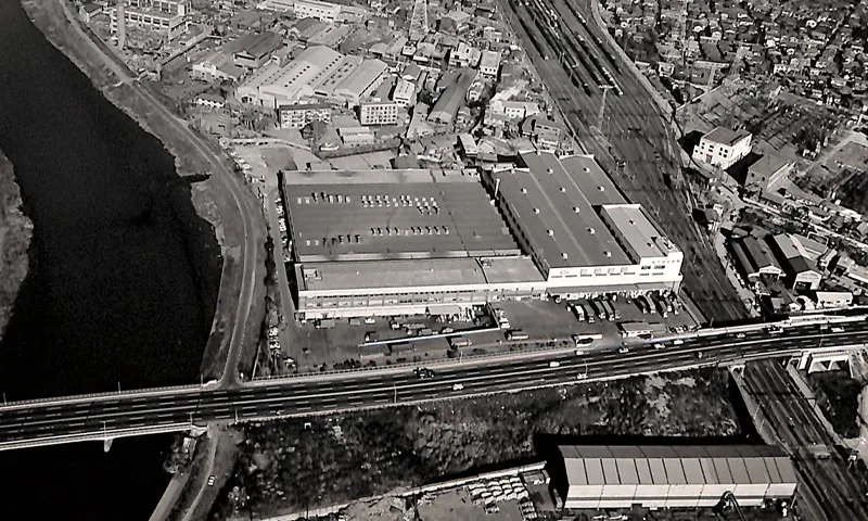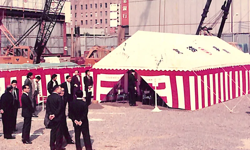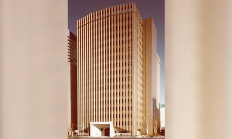1941年に移転した幸ビル(東洋製罐本社)。1980年に建て替えられるまで、東洋ガラス株式会社の本社(写真右)と隣接していた。2012年に新本社ビルに移転するまでここに本社機能が置かれていた