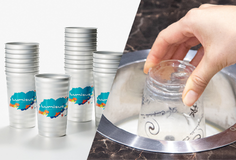当たり前に使われている缶や紙コップ、プラスチックコップにガラスびん。