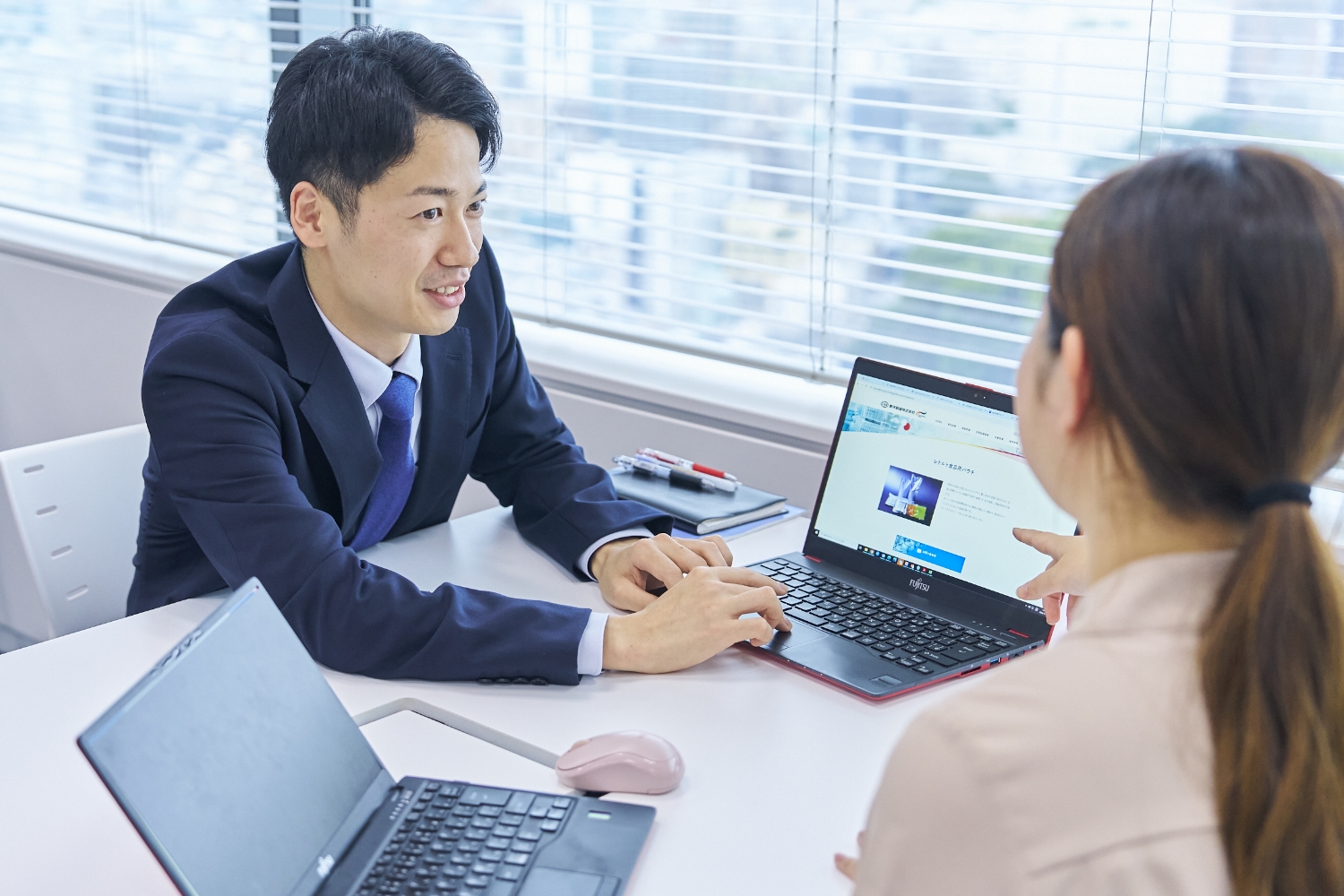 周囲を巻き込みながら他部署とのコミュニケ―ションを積極的にとれる人です。自身の主張をしつつ、周りを見ながら行動できる姿は先輩の私も尊敬しており、その明るい人柄も魅力的で、とても頼りがいのある後輩です。