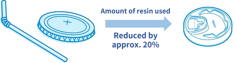 Compared to conventional lids with straw (calculated as flat lid + resin straw total*1), this lid reduces resin usage by approximately 20%, resulting in a similar reduction of 20% in GHG emissions from resin production*2.