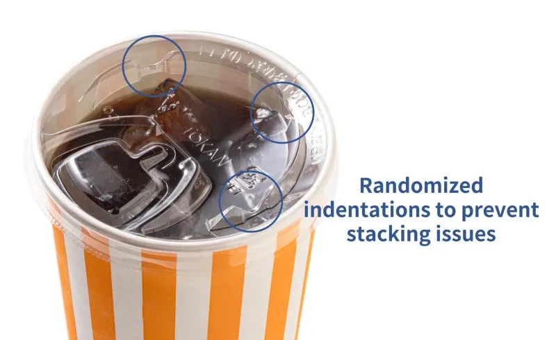 Generally, the thinner a lid is, the more prone it becomes to nesting. However, this product solves that by incorporating small, randomly placed dimples that slightly misalign the lids when stacked, reducing the chances of them getting stuck—all without compromising the appearance.