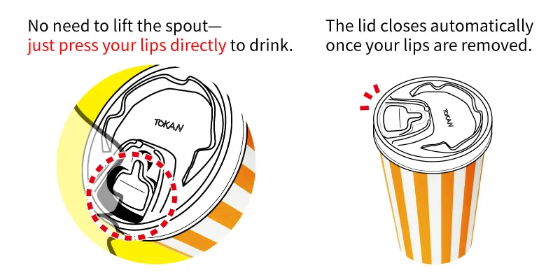 This is a hands-free lid that opens by lightly pressing the drinking spout with the upper lip. It allows people to drink by simply tilting the cup, making it relatively easy to use even for seniors or those with limited hand or finger mobility.