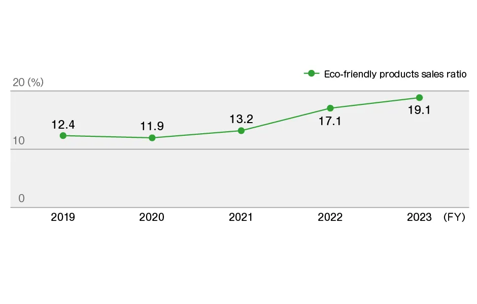 In our analysis of climate change scenarios, we have identified increased sales of eco-friendly products as a result of changes in consumer behavior as a growth opportunity. We consequently track the proportion of such sales as a ratio of total sales as an indicator for grasping progress in this area.