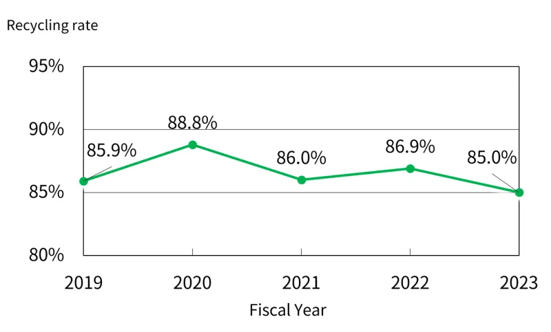 Toyo Seikan Group's business involves processing raw materials, such as metals and petroleum, to manufacture packaging containers and steel plates. Therefore, effectively utilizing resources, including reducing input materials and minimizing waste generation through recycling, is a significant mission for the group. In particular, packaging container waste accounts for 63.6% of household waste by volume, according to the composition survey conducted by the Ministry of the Environment in 2023.