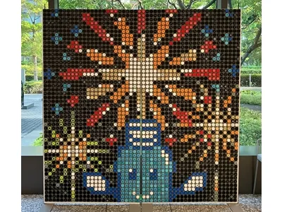 多くの来場者さまと一緒になって2,500個ものPETボトルキャップを使ってモザイクアートを完成させました。皆さん、記念撮影をして楽しんでいました。