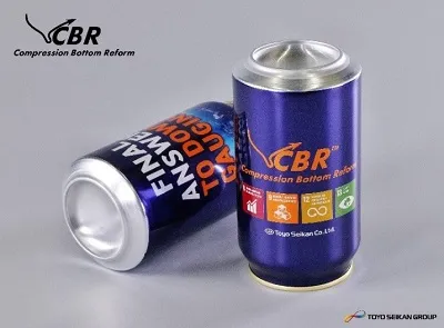本製品は、アルミ飲料缶の底部をリフォームして強化し、軽量化を実現する革新的な缶底耐圧強度向上技術、CBR(Compression Bottom Reform)を使用することで、高い缶底耐圧強度による品質の担保と軽量化を両立し、アルミ材料の使用量減少にともなう温室効果ガス(GHG)排出量削減にも寄与します。CBRにより、350ml・500mlのアルミDI缶では、それぞれ1.5g(12.8%)と2.0g(13.3%)軽量化し、国内最軽量※6を実現しています。将来的に、CBRが適用可能とされるアルミ飲料缶全てにCBRを採用した場合、GHG排出量が年間約40千t※7削減される見込みです。