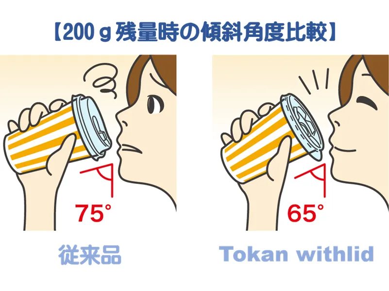 従来品の飲みにくさを格段に解決するだけではなく、残液が残るという問題も解決するという画期的な技術だと思います。ストロー無しでの飲みものの普及にはまだ課題があることから、今後の普及が期待できます。人によっては飲み口がわからなかったり、余計なものが付いていると勘違いすることも考えられるため、飲み口が分かるような表示を付けるなど、さらなる工夫も考えられるのではないかと思いました。