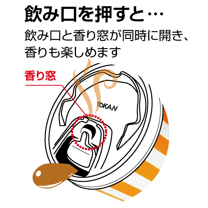 飲み口を押すと、鼻孔付近の切り込み(香り窓)が開き、飲みながら香りを楽しむことができます。
