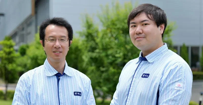 東洋製罐株式会社テクニカルセンター 設備技術開発部 グループリーダー田中宏樹(左)テクニカルセンター プラスチック技術開発部 勝田翔大郎(右)