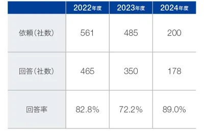 CSRガイドライン自己診断の実施当社グループとともに持続可能な社会の実現を目指すためのコミュニケーションツールとして、サプライヤーCSRガイドラインに関する自己診断を継続してお願いしています。また、一部のサプライヤーとの間で、自己診断に基づく現状の確認および今後の改善に向けた対話も行いました。今後も対象となる取引先を拡大し、コミュニケーションの強化を図ります。 |